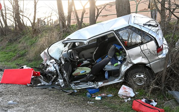 A közlemény szerint a járműbe beszorult asszony életéért hiába küzdöttek tűzoltók és mentők, nem tudták megmenteni. Utasa, egy 61 éves budapesti férfi súlyos, míg az előzést végző 22 éves sofőr könnyű sérülést szenvedett.